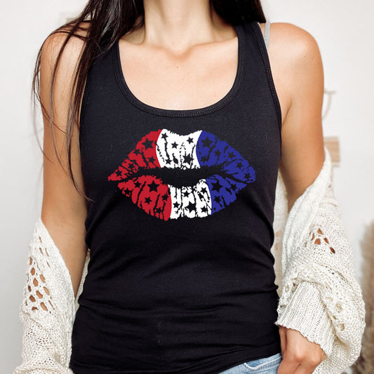 4TH OF JULY LIPS Graphic Racerback Tank Top